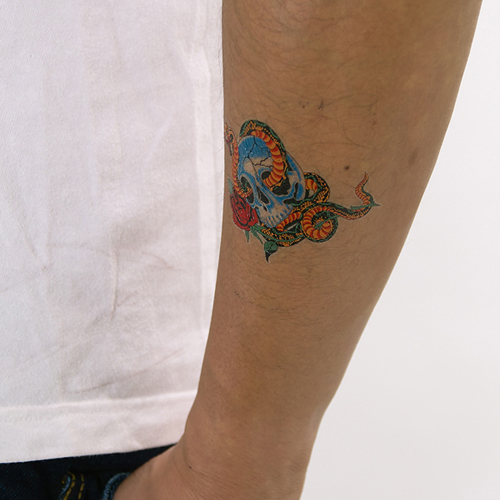 トップページ > タトゥー・刺青シール > タトゥー・レギュラー > タトゥーシール 蛇とドクロ