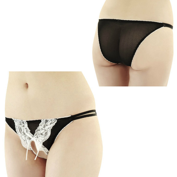 <EROX>白いフリルが蝶みたい!ブラック+ホワイトレースのハーフバックオープンショーツです。
