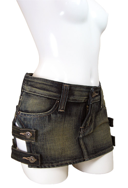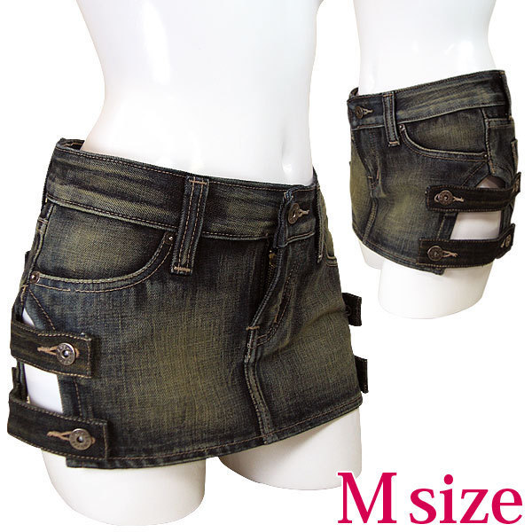 両サイドの太股部分をカット!チラ見えセクシーなデニムのミニスカート(M)。