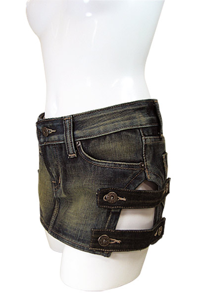 人気のデニム生地を使用した、ヒップハンガーのセクシーコスチューム!両サイドを大胆にカットして、ボタン留めのベルトデザインに仕立てました。