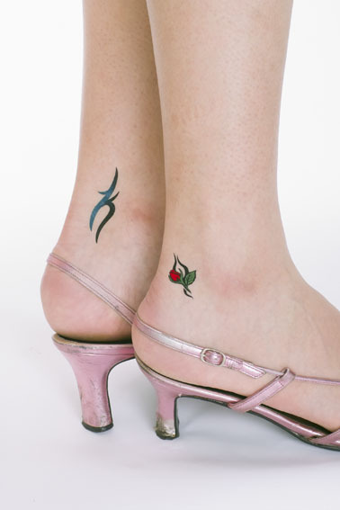 コスチューム等に合わせて露出した肌に貼り付けるだけ!特殊な素材を使用しているので皮膚の動きと一緒に伸び縮みし、入浴したり海やプールに入っても2〜3日は取れません。
