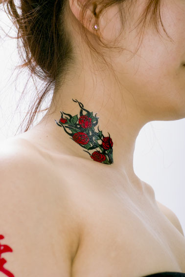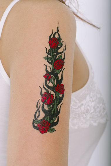 イベントやお祭りに大活躍!レギュラーサイズのペーパータトゥーシール「赤薔薇幻想」。