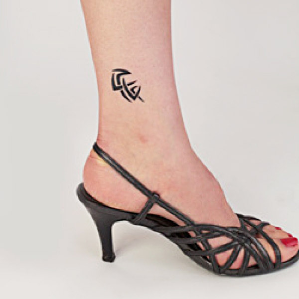 勇ましく美しい!幾何学的なトライバル模様のブラックミニタトゥーシール。
