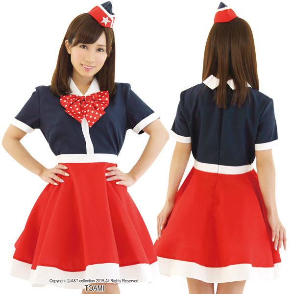 レトロながらもポップな雰囲気漂うキャビンアテンダント風コスチューム。
