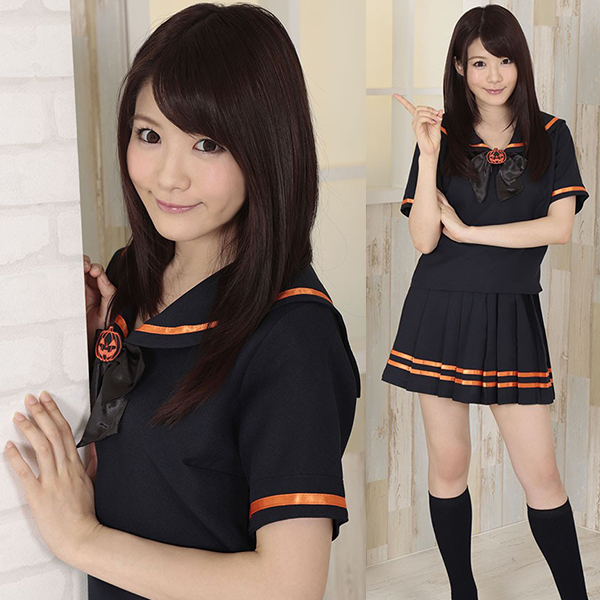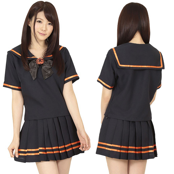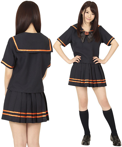 制服コスプレでさりげなくハロウィンモード♪ブラック×パンプキンカラーのセーラー服。