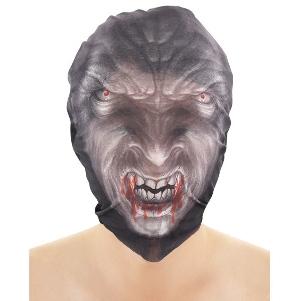 人々を恐怖に陥れる怪物、人狼フェイスをプリントしたリアルホラーマスク。