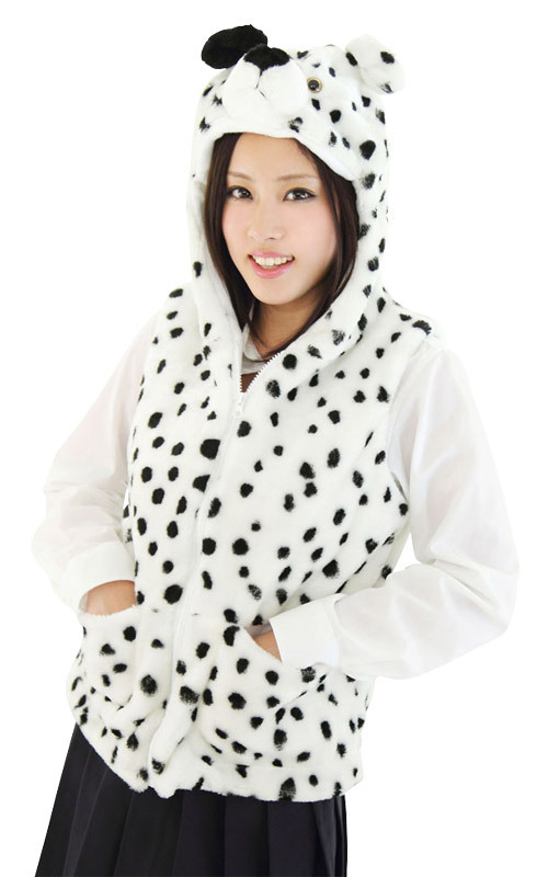 白×ランダムな黒点がCOOL!チーターの毛皮プリントがワイルドな着ぐるみベスト。