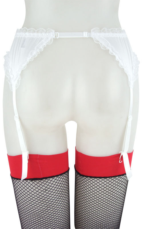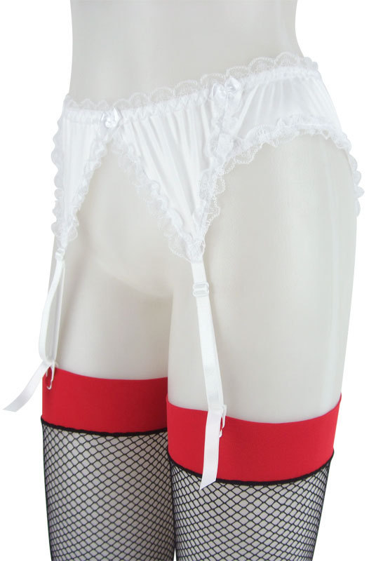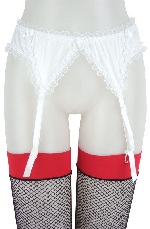 セクシーなガーターベルトもホワイトカラーならキュートに♪光沢素材とフリルレースのガーターベルト。