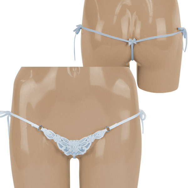 トップページ > 下着 > オープン ブラ・ショーツ(穴あき) > 極小フロントレースサイドリボンGスト サックス