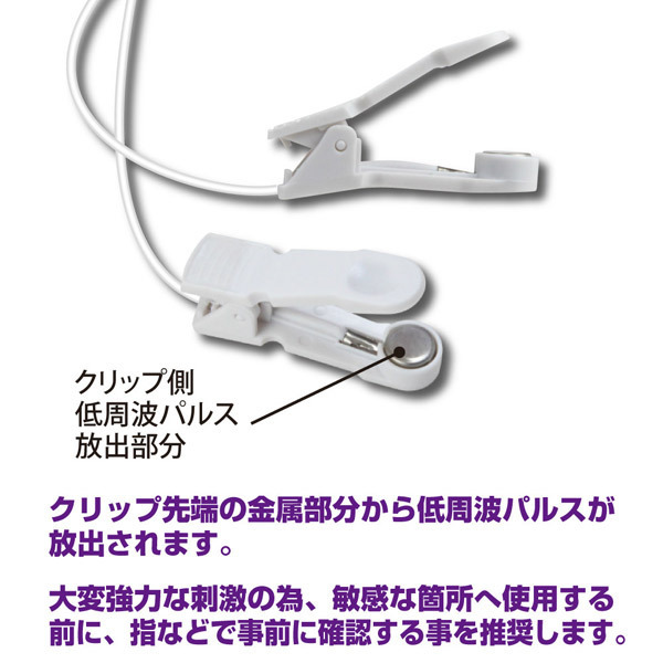 ●超刺激的な低周波パルスローター●乳首責め用の「サンダーパルス1」●ジャック式ニップルピンチ2個付●ダイヤル式で簡単にコントロール●低周波パルスの強弱は無段階調整●放出速度間隔は2段階の切り替え可●リモコン側にもパルス機能を搭載。