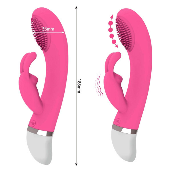 先端ブラシがウェーブ状にマッサージ♪上下スライドボールを内蔵したGスポット責めバイブレーター「プリティラブ Gスポットウェーブラビット」。