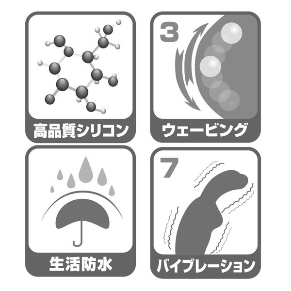 ●高品質シリコン素材のボディ●肌触りの良い程よい柔らかさ●弧を描くような美しいカーブ●丸みのある先端にはイボ突起●ヘッド内のボールが小刻みに上下●ウェービングは3パターン●大きなウサ耳型のクリバイブ●盛り沢山な7種振動パターン●単四電池×2本使用(別売り)●生活防水仕様。