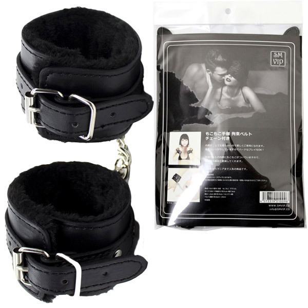 もこもこファー素材で優しく拘束♪チェーン付きのSM拘束手枷。