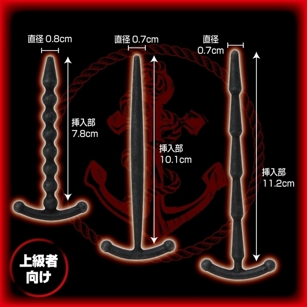 CBT上級者さんの尿道責めプレイに♪錨デザインの尿道プラグ3個セット「メイルデバイスアンカー アドバンス」。