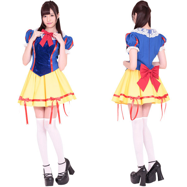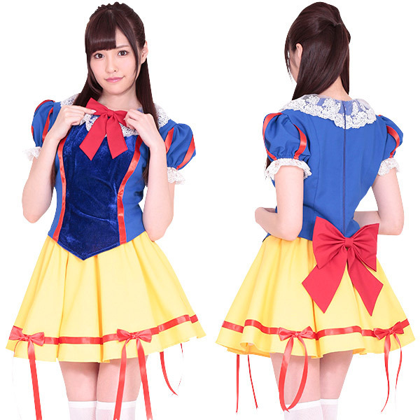 青、赤、黄色の定番カラーで仕上げたおとぎの国のヒロイン衣装♪トップスの襟に幅広レース&赤リボン、プリーツスカートには裾リボン、さらに大きめのバックリボンなど可愛いを凝縮!全てがラブリーな愛されプリンセスコスチュームです。