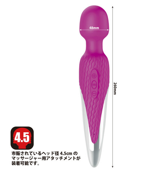 超強力振動でも静音性抜群!全長26cmのハンディサイズ電マ「プリティラブ パワフルワンドマッサージャー」。