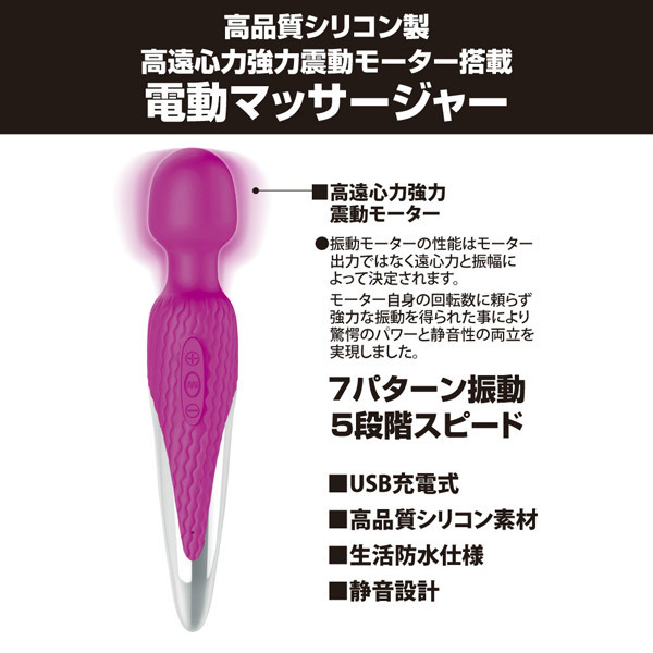 7種類の超強力バイブレーションと5段階のスピード調整が可能、USB充電式(専用コード付属)&生活防水仕様でいつでも清潔に使えます。