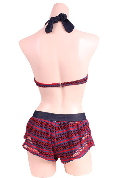 トップページ > 衣装・コスチューム > その他 > デニムコラボメッシュレースビキニ ショートパンツ3点セット レッド