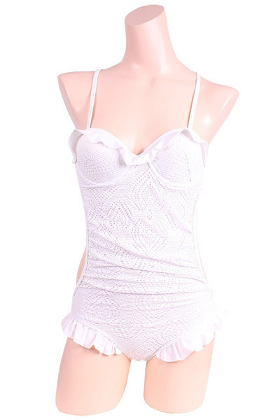 トップページ > 衣装・コスチューム > その他 > フェミニンレース2枚仕立てワンピーススイムウエアー ホワイト