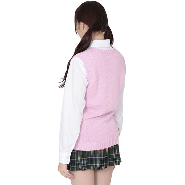 寒い季節に重宝する、可愛らしいピンクのVネックベスト単品!どんな制服コスチュームにもシンプルで合わせやすいコスプレアイテム。