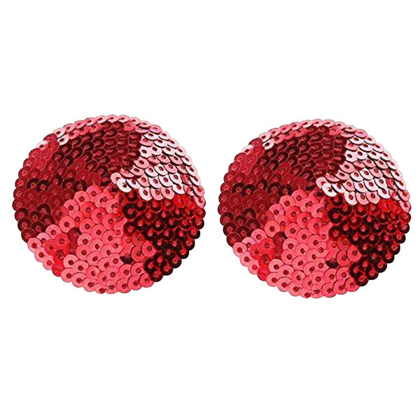 ピタッと貼るだけの簡単仕様♪バストトップ(乳首)に貼るだけで、手軽にオシャレが楽しめる下着感覚のニップルジュエリー「ニップルカバー スパンコールラウンド 赤」。