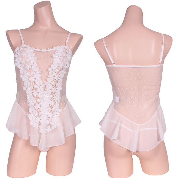 トップページ > 下着 > ベビードール・スリップ > フリルとレースで可愛さ増しベビードール&Tバックセット ホワイト