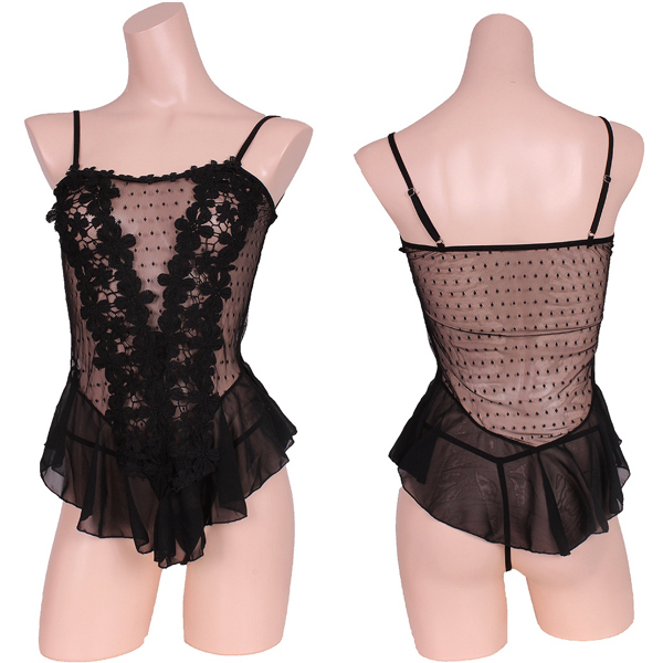トップページ > 下着 > ベビードール・スリップ > フリルとレースで可愛さ増しベビードール&Tバックセット ブラック