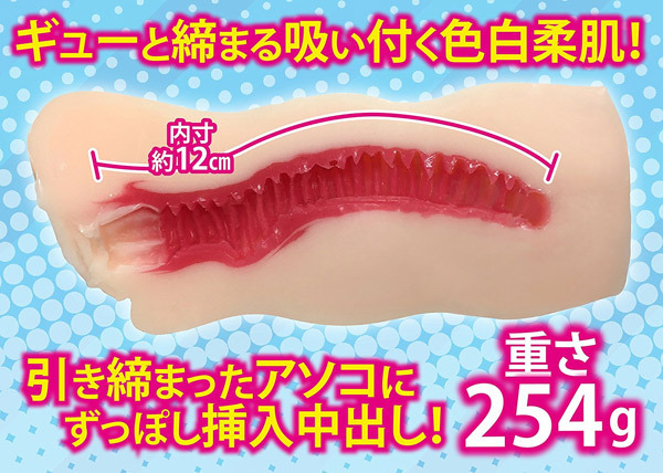 引き締まった女子大生チアガールのアソコを再現した生中出し感覚を楽しめるオナホールです!チアリーディングで鍛えたボディをイメージさせる美肌ボディは、抜群のさわり心地でウェーブが入っているので握りやすくストロークの際に疲れを感じさせません♪外観は、むっちりとした白い柔肌の美肌ボディで内部は、赤く色づいた膣内となっており、ギュンギュン絡みつく極上ヒダ名器を再現しています。
