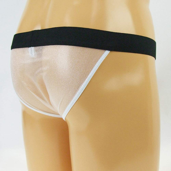 太めの黒ゴムと透け感のある生地で逞しさを演出する日本製フルバック(白)。透け素材を使っているため通気性があり夏場も快適にお使いいただけます♪