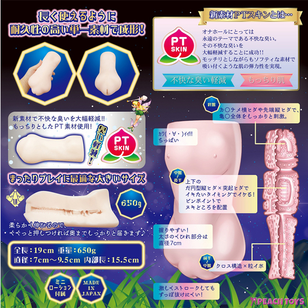 柔らかなヒダに600粒のイボイボがびっしりと絡みつき奥は迷宮のように複雑でベローンとした高さのあるヒダヒダが待ち受けます!もっちりとしながらもソフティな素材感で吸い付くような肌の弾力を実現。