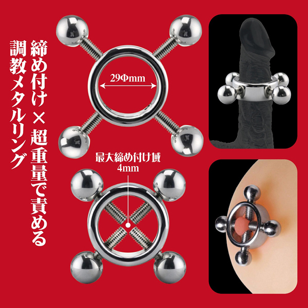男性器から乳首まで約2.9cmから4mm幅まで対応可能♪鬼のような締め付けと超重量で徹底的に調教する!