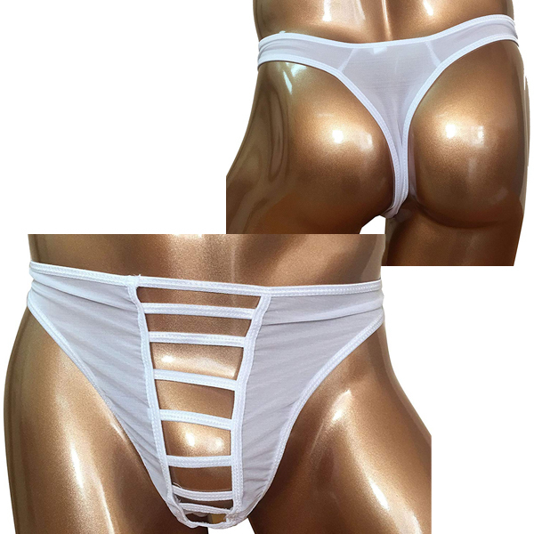 フロント部分だけ大胆にオープン♪開放感が味わえるメンズ用Tバック(白)。