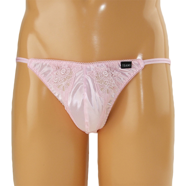 メンズ 光沢ストレッチ生地レース装飾フルバック ピンク