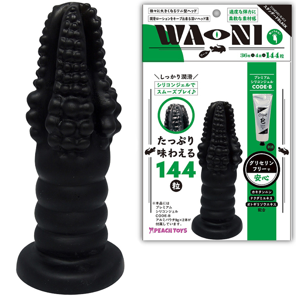 潤滑ローションが溜まる深めの溝を先端に4本配置したことで、乾きにくくした使い勝手の良いディルド!先端から下にいくにつれて大きさが増すワニ型ヘッドは、初心者〜上級者まで満足のいくサイズとなっております。