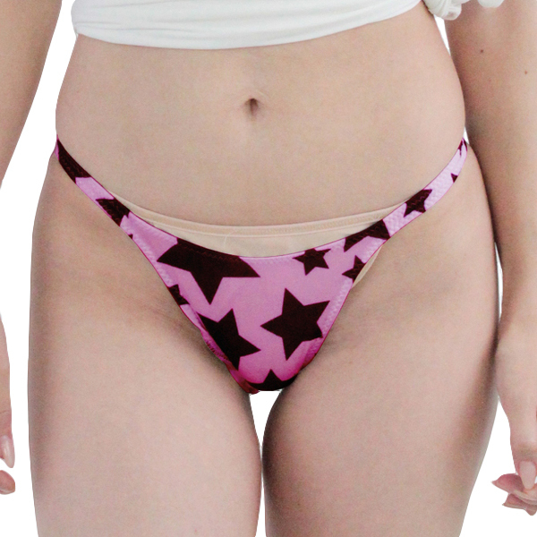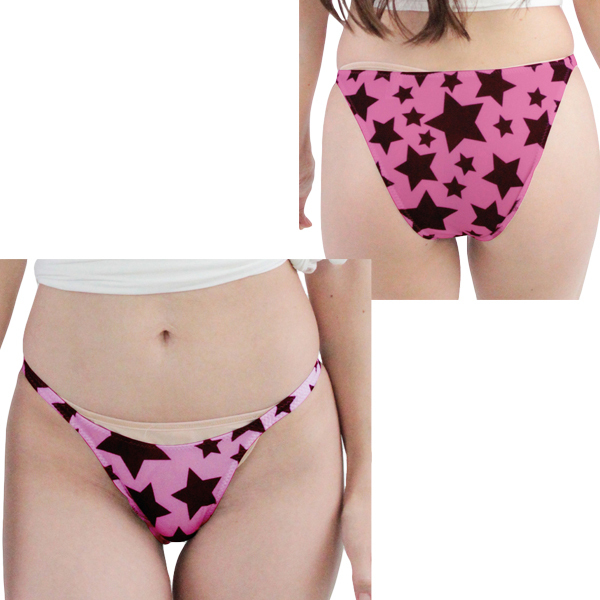 伸縮性のあるピンクのストレッチ生地に、大柄の星柄が目を惹くハイレグ仕様の日本製ハーフバック。タイトなフィット感とポップなデザインで彼の視線にくぎ付けに♪