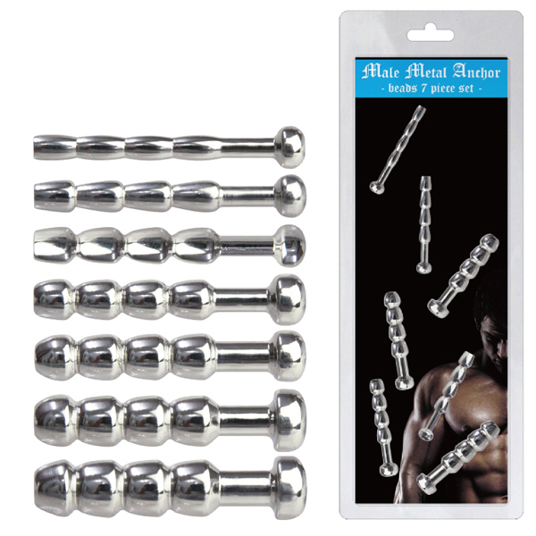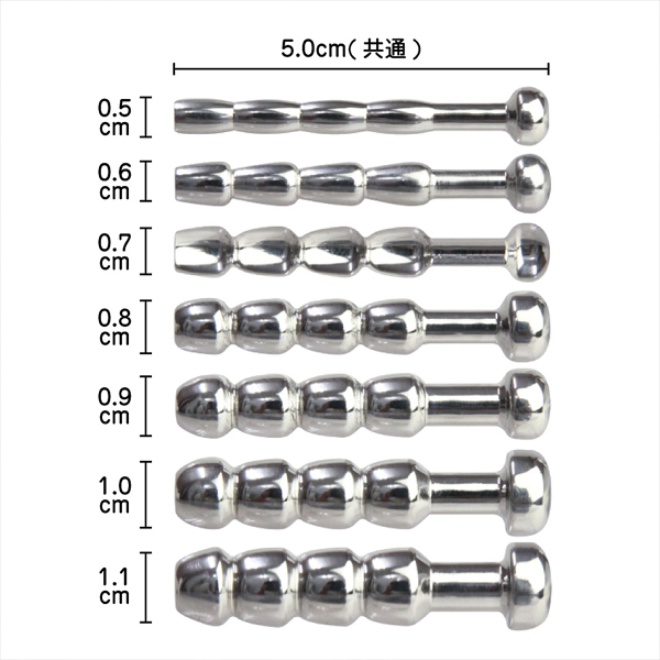 細めから太めまで幅広く試せるお得な7本入り!硬質なメタル素材のビーズタイプブジーのセット。