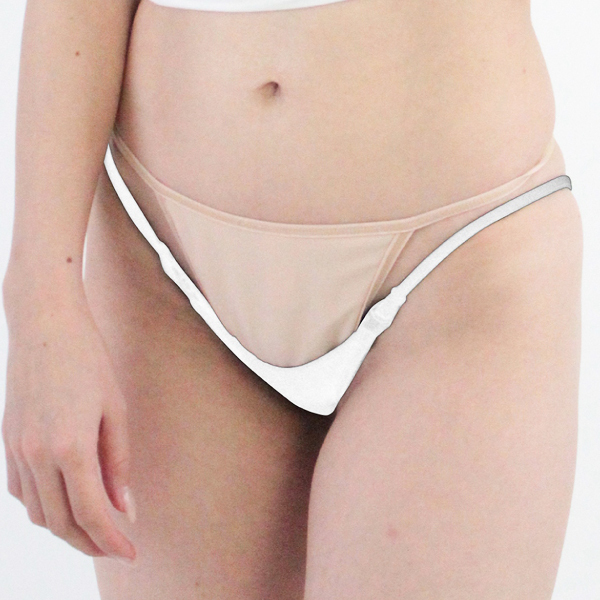 ワンタッチで着脱簡単!超ローライズ仕様の極小ハーフバック(白)。