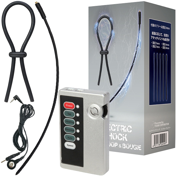 ループを巻き付けブジーを挿入、あとはリモコンに接続するだけで低周波パルスによる電流責めが体感できる!4パターンのパルス×5段階のスピードを搭載♪普通の刺激では物足りない、より強い刺激をお求めの方に