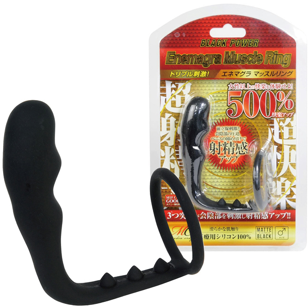 いつもの射精感をさらにアップさせたいならこちら!前立腺と会陰部、そしてペニスの3か所を同時に刺激し、射精感を更に増幅してくれるコックリング付きのアナルプラグ「エネマグラ(マッスルリング)」です。