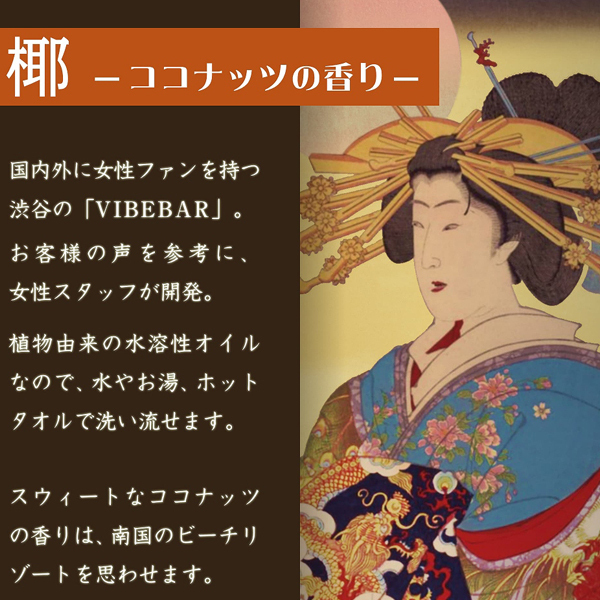 浮世絵ラベルの和風テイストなボトルが特徴的!渋谷「バイブバー」の女性スタッフが、女性のために開発した植物由来の日本製オイルです。