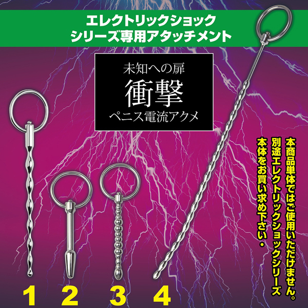 連続する球体が凸凹刺激をプラスする低周波パルスグッズ、エレクトリックショックシリーズの専用ブジーアタッチメント。