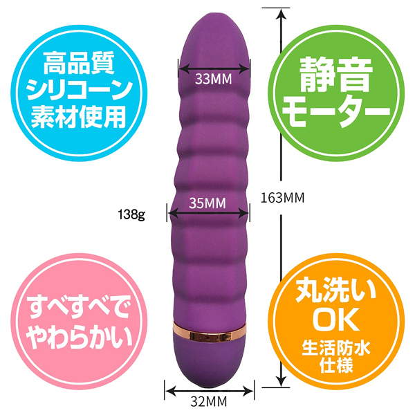段々と配置された凹凸がGスポを捉えて振動刺激!素材は肌に優しく柔かい高品質シリコン製。