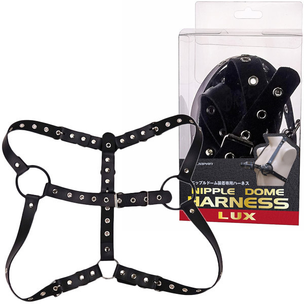 柔らかな合皮素材の黒ハーネスがニップルドームを胸にしっかり固定!サイズ調整できるピンバックル式で、男女、体型問わず幅広いプレイを可能にします。