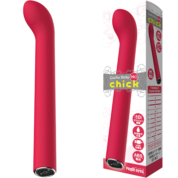 USB充電式なので電池交換の煩わしさもなく、Gスポット等の敏感な場所にもピンポイントで届く絶妙なサイズ感が嬉しいクチュスティッキーChickです。