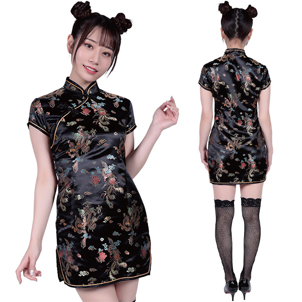 サイドスリットが良い感じのミニ丈なチャイナコスチュームです♪オーソドックスかつ超ミニスカートなデザイン!ボディラインを美しく仕上げてキレイなシルエットを魅せるとともに美脚もしっかりアピールできます♪色違いでお友だちとのお揃いにもおすすめ!