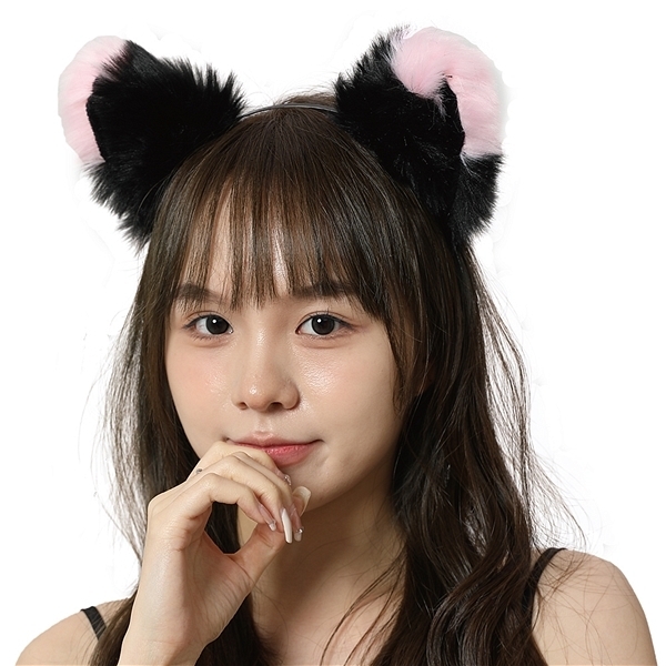 エロコス もふもふ耳カチューシャ (黒×ピンク)