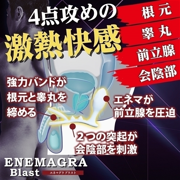 前立腺刺激と会陰部の圧迫、ペニスの締め付けで射精感UP!2つの突起が会陰部を刺激し、射精感を更にUP!根本、睾丸、会陰部、前立腺の4か所を同時に刺激!100%医療用シリコン素材。