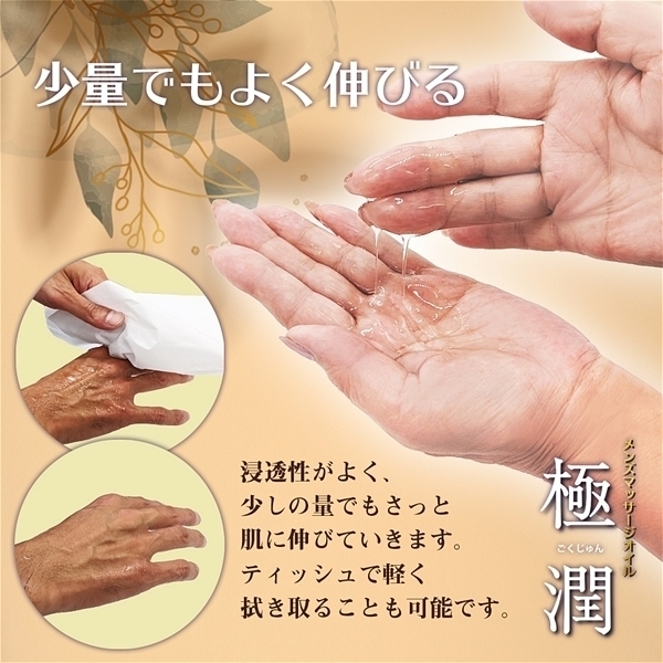 「最上級の潤い」、「最上級の滑らかさ」、さらに「最上級の使いやすさ」を追い求めて完成したマッサーオイル「極潤」。