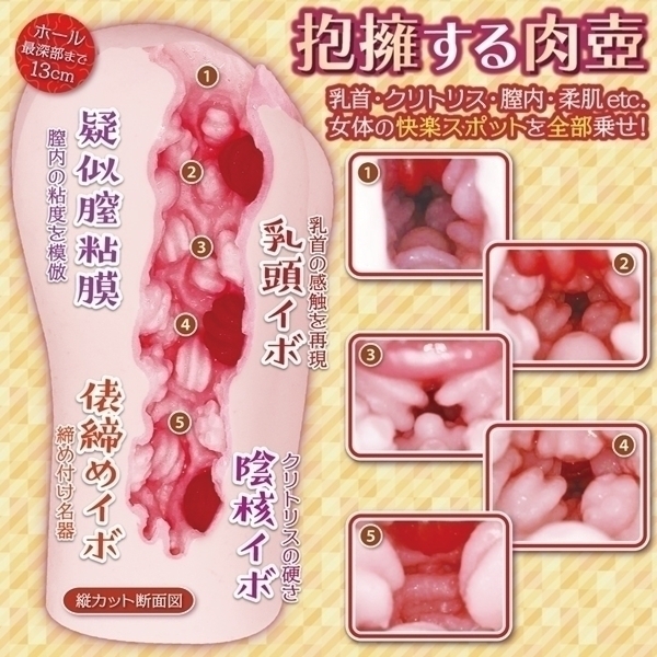 「女体楽園 All in One」はそれら箇所の“感触”をラボグロウン(研究所開発)し、「性欲処理の肉壺」として具現化したオナホールです。