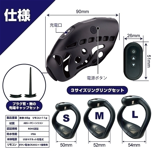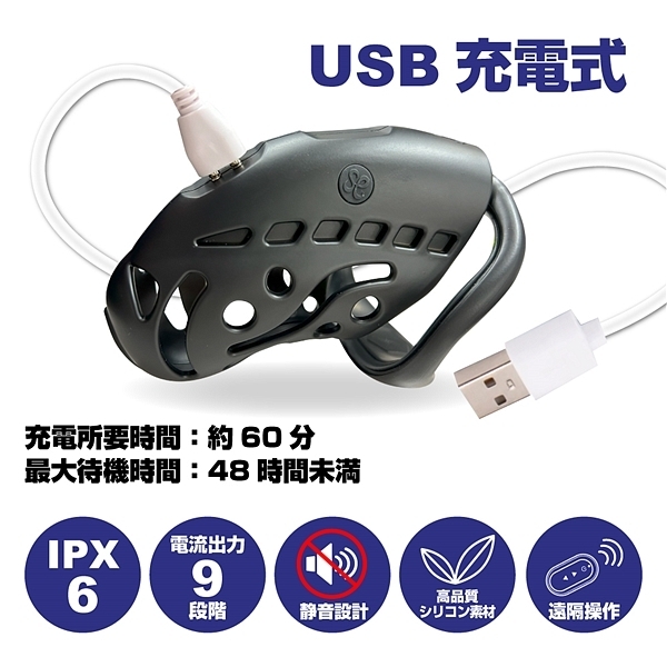 射精管理電流調教!悶絶!電撃低周波パルスコックケージの新商品が登場!熱や衝撃に強いABS樹脂で造形された、見た目もスタイリッシュな見た目。